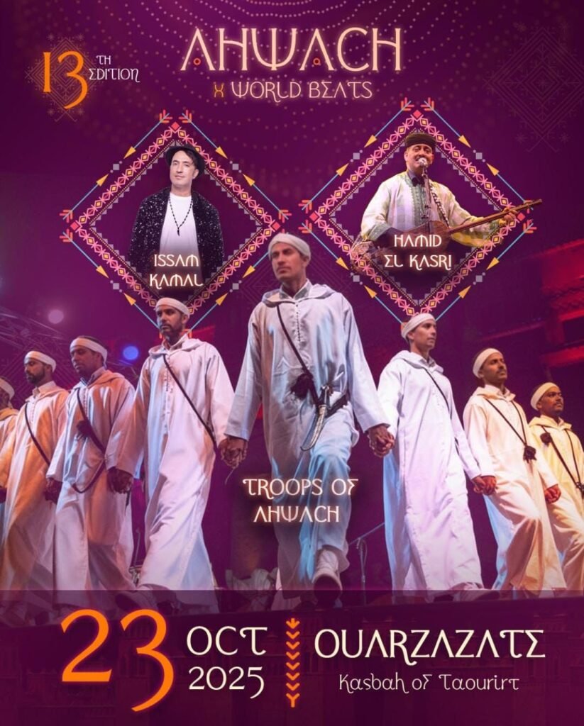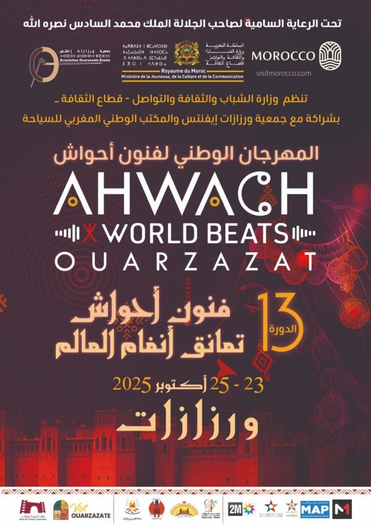 تعيش مدينة ورزازات على إيقاع الدورة الثالثة عشرة من المهرجان الوطني لفنون أحواش، المنظم تحت الرعاية السامية لصاحب الجلالة الملك محمد السادس نصره الله، خلال الفترة الممتدة من 23 إلى 25 أكتوبر 2025، تحت شعار: