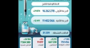 أكمل القراءة »“كوفيد 19”..7380 إصابة جديدة و 9272 حالة شفاء خلال 24 ساعة
