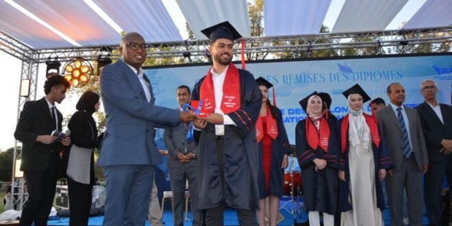بنحمد. أ نظم مساء يوم السبت 12 يوليوز 2025 بالكولف الملكي الجامعي بمدينة سطات, حفل تسليم الديبلومات للفوج 27 من خريجات و خرجي المدرسة الوطنية للتجارة والتسيير بسطات برسم السنة الجامعية 2024- 2025 ويتكون فوج هده السنة، الذي يضم بالإضافة الى الطلبة المغاربة طلبة اجانب من دول السودان و غانا …