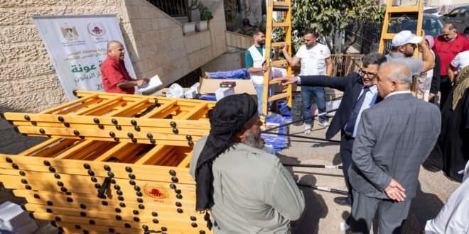القدس 16 أكتوبر 2024أطلقت وكالة بيت مال القدس الشريف بمحافظة القدس بالرام حملة “عونة” لقطاف الزيتون لموسم 2024، بعملية توزيع الأدوات والمعدات على المزارعين المستفيدين وعددهم 1500 مزارع، أشرف عليها نائب محافظ القدس، عبد الله صيام، ومنسق برامج ومشاريع الوكالة في القدس، إسماعيل الرملي، بحضور عدد من رؤساء المجالس المحلية …