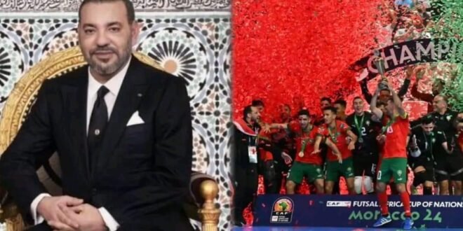 برقية جلالة الملك ” وبعد، فيسعدنا أن نتوجه إليكم بتهانئنا الحارة عقب فوزكم بلقب النسخة السابعة من كأس الأمم الأفريقية لكرة القدم داخل القاعة (المغرب 2024)، والتي استضافتها عاصمتنا الغالية الرباط بكل ما يليق بها من حفاوة استقبال وحسن تنظيم”.وقال جلالة الملك ” وإننا لفخورون جدا بما أظهرتموه من إصرار …