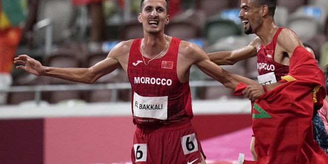 سفيان البقالي يحتفل مع محمد تندوفت بفوزه بذهبية نهائي سباق 3000 متر حواجز منح العدّاء سفيان البقالي المغرب ذهبيته الأولى في الألعاب الأولمبية منذ العام 2004، بعد تتويجه في سباق ثلاثة آلاف متر موانع في ألعاب القوى في أولمبياد طوكيو الأحد، بزمن قدره 8:08.90 دقائق. ونال الإثيوبي لاميشا غيرما الفضية …